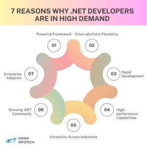 - The combination of technological strength, widespread enterprise adoption, rapid development, cross-platform flexibility, and strong integration capabilities makes dedicated .NET developers highly in demand in the software development market.